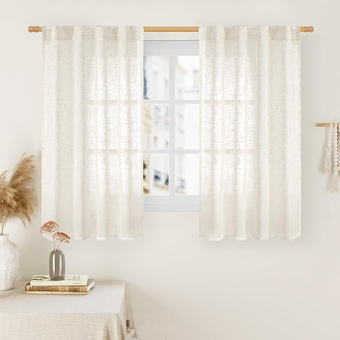 LAMIT 45 Inch Short Window Linen Curtains, Light Filtering Panels Back Tab and Rod Pocket Neutral Drapes for Cafe/Bathroom/Loft Room, Cream, 2 Panels, 34 x 45 Inch