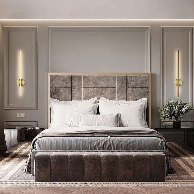 Battery Operated Modern Wall Sconces, Dimmable Wireless Wall Light Set of Two with Remote Control, 3 Color Temperatures, Rechargeable LED Wall Sconce for Bedroom, Living Room, Hallway, 27.6 Inch Brass