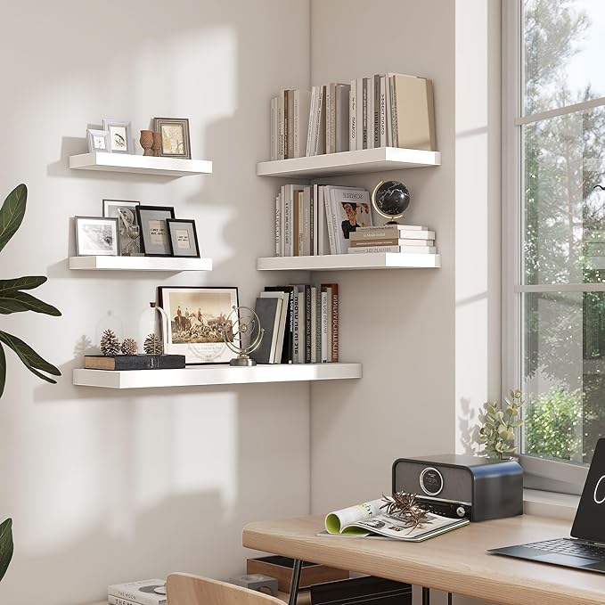 - 【Easy to install and clean】Our white wall floating shelves come with detailed installation instructions and can be installed quickly in 5 minutes-users can easily complete the installation without professional skills. The white floating shelf has a smooth surface, is durable, and is easy to clean. Just wipe it gently with a damp cloth to keep it clean.
