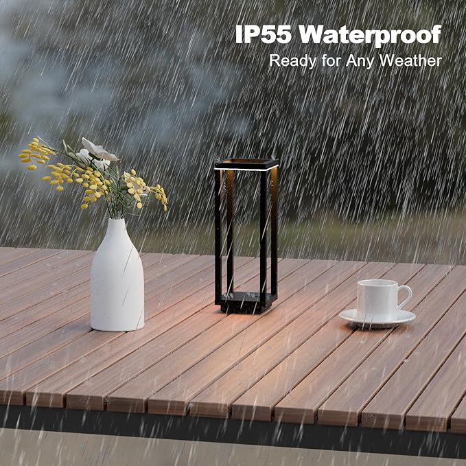 - 【IP55 Waterproof & Reliable】This battery operated table lamp undergoes rigorous factory testing and is designed for seamless use both indoors and outdoors. Our led table lamp features a durable button switch instead of a touch sensor, preventing issues like the led outdoor table lamp automatically turning on or failing to turn off due to rain, which is common with other similar battery outdoor lamp.