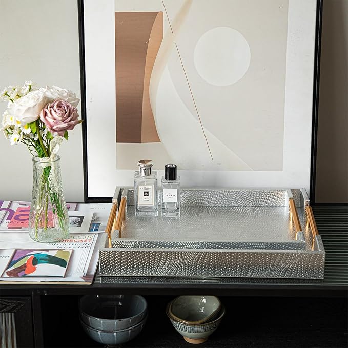 - Versatile Serving Trays with Handles: Designed for both practicality and style, these serving trays with handles are ideal for carrying snacks, drinks, or remote controls. Use them as ottoman trays for your living room or as decorative trays for home decor