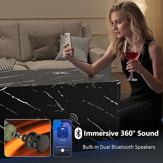 - 【Immersive Audio Experience】Built-in dual Bluetooth speakers deliver deep, balanced stereo sound with precise surround effects. Ideal as a center table for living rooms, elevating movie nights or parties.
