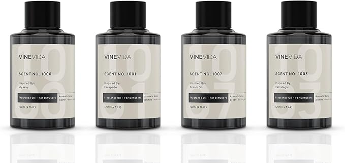 VINEVIDA (Pack of 4) Hotel Fragrance Collection Diffuser Oil - Hotel Scents Diffusers for Home - Cold Air Diffuser Oil - Hotel Scent Essential Oil, Diffuser Scents No. 1000, No.1001, No.1007, No.1003