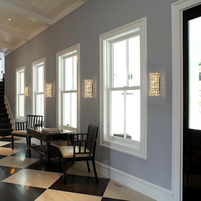 - Sculptural Hourglass Silhouette:Standing 11.8 inches tall and 5.1 inches wide, the gently cinched hourglass shape of this sconce adds graceful movement and depth. Its sculptural form, paired with the geometric grid of crystals, brings a harmonious balance of modernity and timeless beauty.
