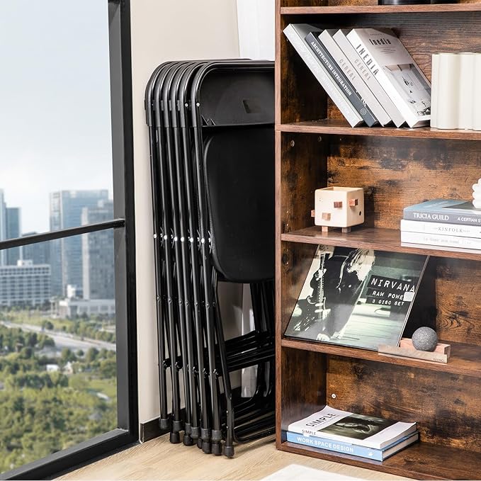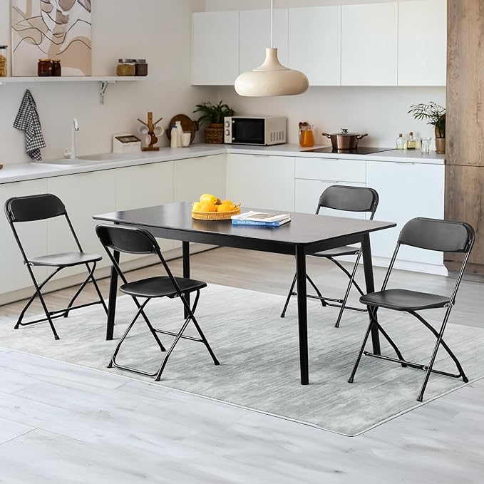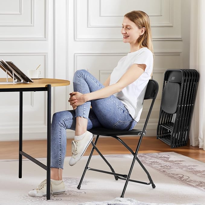 Sweetcrispy Folding Chair 8 Pack, Plastic Foldable Chairs with 330-Pound Capacity, Sturdy Metal Portable Chair, Easy to Use and Store, Outdoor and Indoor, for Home, Office, Party, Comfy, Black