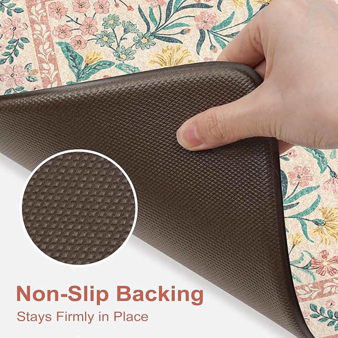 - Floral Pattern & Versatile: Featuring a freshness floral design, this comfort carpet adds a touch of elegant and vitality to your space. The combination of vintage bohemian and modern style can decorate your kitchen, bathroom, laundry room, bathroom