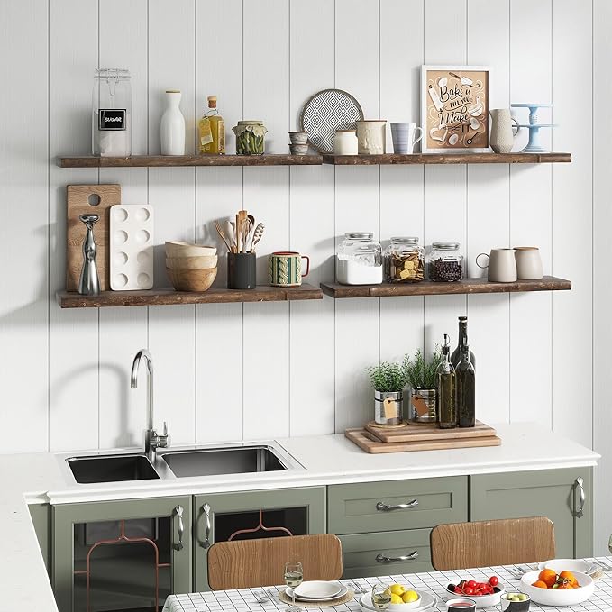 - MULTIFUNCTIONAL INTEGRATION: These natural wood floating shelves suit any space, from the living room to the bathroom. Display photos, plants, and decor or store toiletries and condiments¡ªyour all-in-one storage solution.