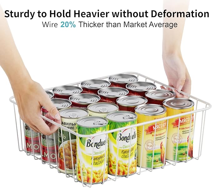- [Sturdy to Hold Heavier Items] The frame of the metal basket is reinforced with 20% thicker lines, more sturdy to carry heavier items without deformation, especially when moving loaded pantry storage organizer, long-lasting and offering better resistance to daily wear and tear