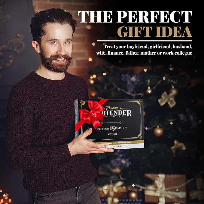 - THE BEST GIFT FOR COCKTAIL LOVERS: Not only are you gifting a premium quality bartending set, you are going to be gifting an experience. The classy gift box is perfectly designed to pack together the wood stand, tools and recipe booklet. The lucky one who will receive this gift is sure to have the excitement of a young child in the toy isle! Don't forget to scan the QR code on our thank you card for a FREE digital cocktail recipe booklet!