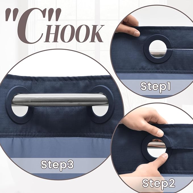 No Hook Slub Textured Shower Curtain with Snap in Liner - Navy Fabric Outer Curtain & Waterproof Inner Liner, Hotel Style with See Through Top Window, 71x74 in