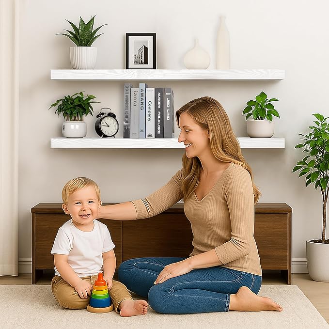 - Seamless Integration: The neutral finish of our floating shelf seamlessly integrates with a wide array of design aesthetics, making it an ideal addition to any home. Enhance your space with this functional piece that combines storage and style effortlessly.