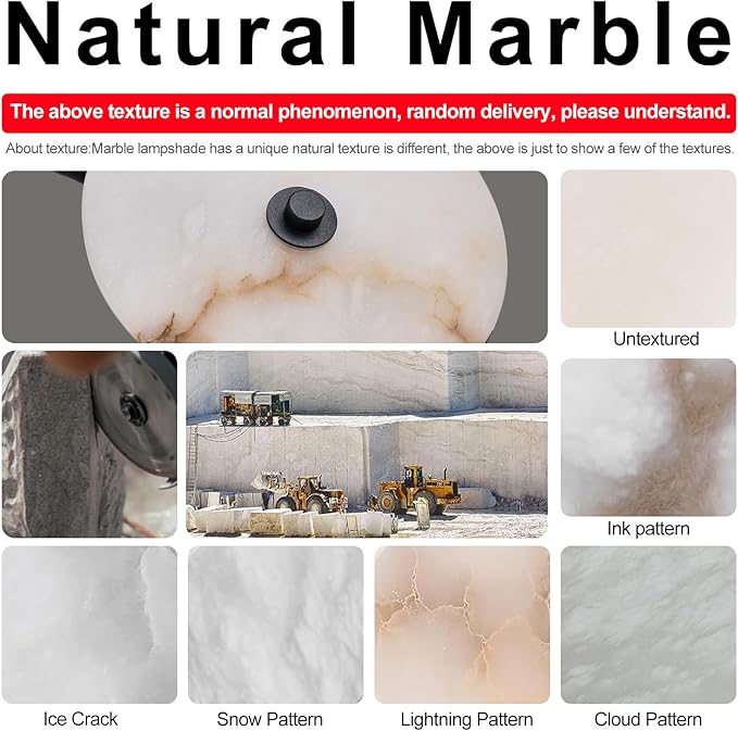 - Natural Wall Sconce:Discover the elegance of our natural marble Wall Sconce, featuring an aluminum base that's resistant to corrosion and rust, ensuring long-lasting durability. Its sleek design makes it perfect for contemporary minimalist decor, adding a timeless charm to any space