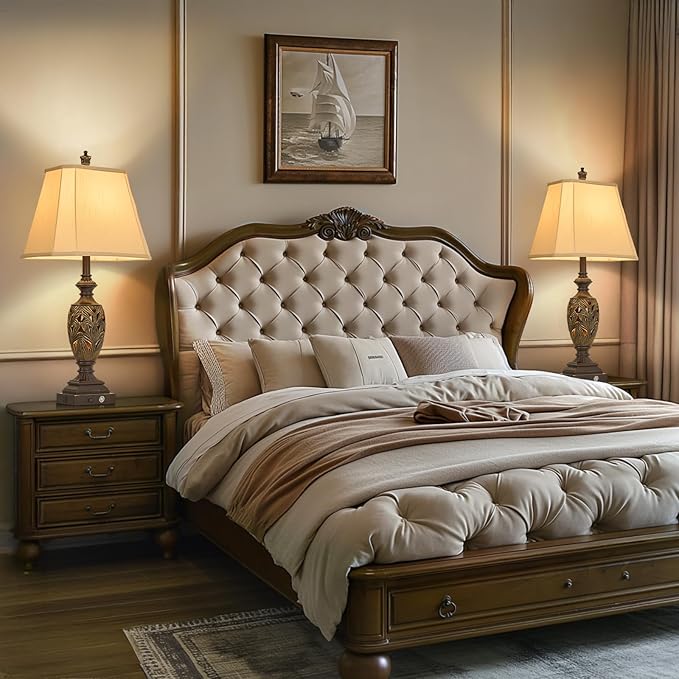 - 【RETRO FARMHOUSE RUSTIC TABLE LAMP】This art piece is hand-crafted and coloured by our artisan who puts great passion on this work.The bronze gold finish of the bedside lamp matches perfectly with the rectangular cut corner shape lampshade to create an elegant atmosphere,easy to fit in most decor for modern,classic,rustic,industrial,retro,nordic.Each lamp is 29.5'' high, 14'' long and 10'' wide, perfect for living room,bedroom,foyer,hallway,dining room,office,study and any room you like.