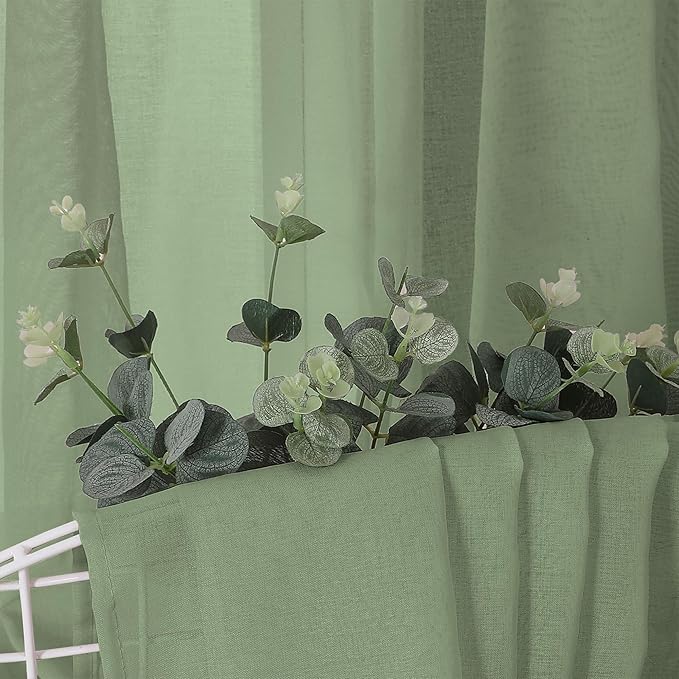Tollpiz Sheer Curtains Linen Textured Bedroom Curtain Sheers Light Filtering Rod Pocket Voile Curtains for Living Room, 54 x 84 inches Long, Sage Green, Set of 2 Panels