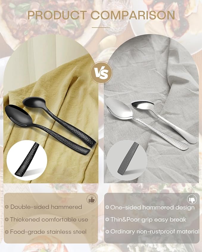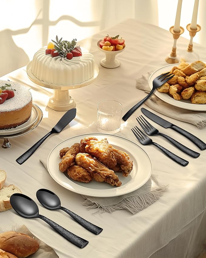 - OLLEX Support: If you have any questions about our Hammered Silverware Set with serving pieces, please contact us anytime, and we will provide timely assistance in resolving. Elevate your dining experience and create lasting memories with this black silverware set for 12