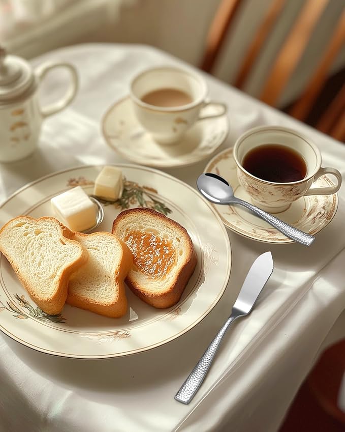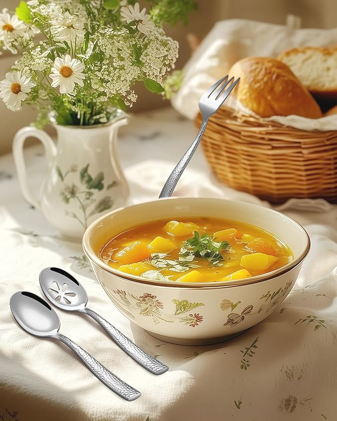 - Premium Heavy Duty Crafted: Hammered Flatware Set made of thick gauge food-grade stainless steel offers durability, rust&corrosion resistance. Enhanced by the advanced hot forged process to strengthen durability, never bends or chips in daily use, ensuring the longest-term value and optimal performance for using