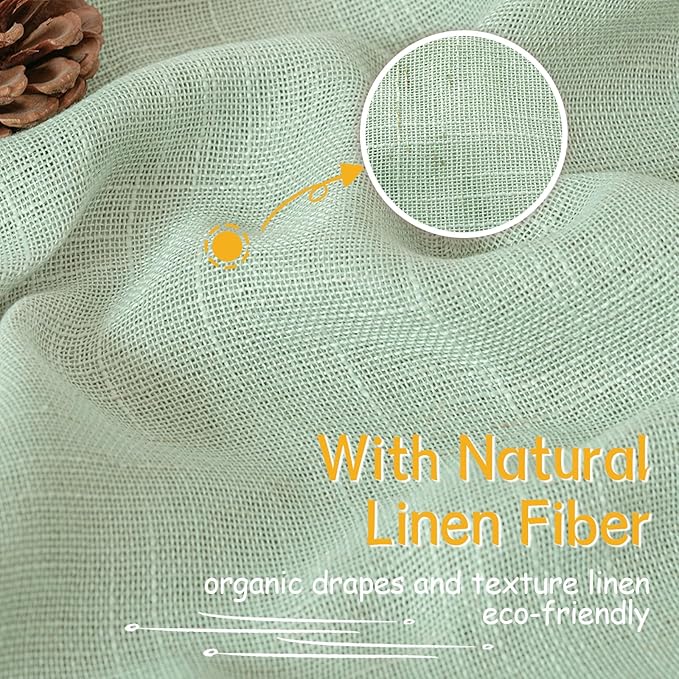 - RICH TEXTURED FOR UNIQUE LOOK: Our sheer linen curtains are made from premium linen blend fabric with natural linen fiber, eco-friendly and pet-friendly. The natural irregularities in the weave give each curtain a one-of-a-kind look that adds depth and character to your windows while infusing your room with warm, inviting feel.