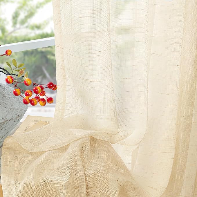 - RICH TEXTURED FOR UNIQUE LOOK: Our sheer linen curtains are made from premium linen blend fabric with natural linen fiber, eco-friendly and pet-friendly. The natural irregularities in the weave give each curtain a one-of-a-kind look that adds depth and character to your windows while infusing your room with warm, inviting feel.