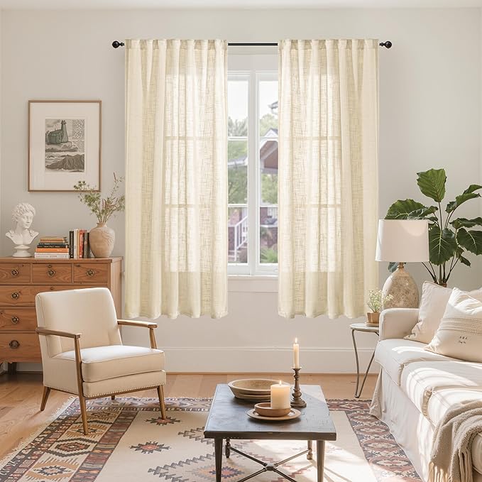 - RICH TEXTURED FOR UNIQUE LOOK: Our sheer linen curtains are made from premium linen blend fabric with natural linen fiber, eco-friendly and pet-friendly. The natural irregularities in the weave give each curtain a one-of-a-kind look that adds depth and character to your windows while infusing your room with warm, inviting feel.