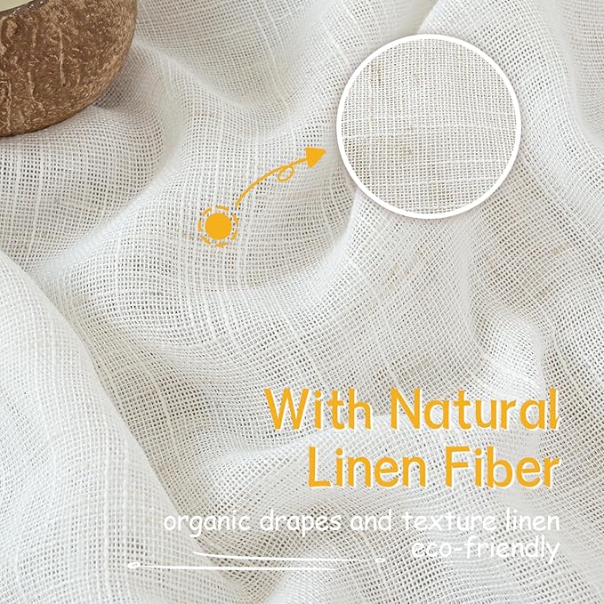 - RICH TEXTURED FOR UNIQUE LOOK: Our sheer linen curtains are made from premium linen blend fabric with natural linen fiber, eco-friendly and pet-friendly. The natural irregularities in the weave give each curtain a one-of-a-kind look that adds depth and character to your windows while infusing your room with warm, inviting feel.