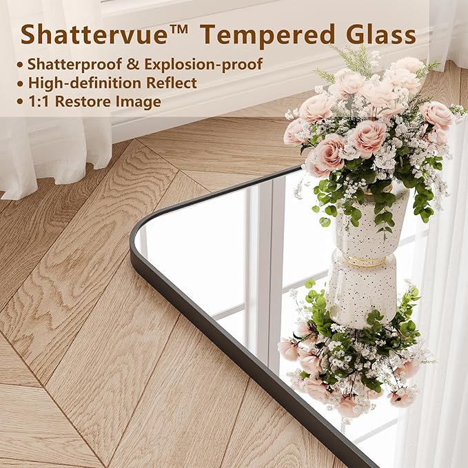 - HD IMAGING:Our full body mirror is made of durable 3mm high definition shattervue tempered glass that maintains high definition reflections without distortion