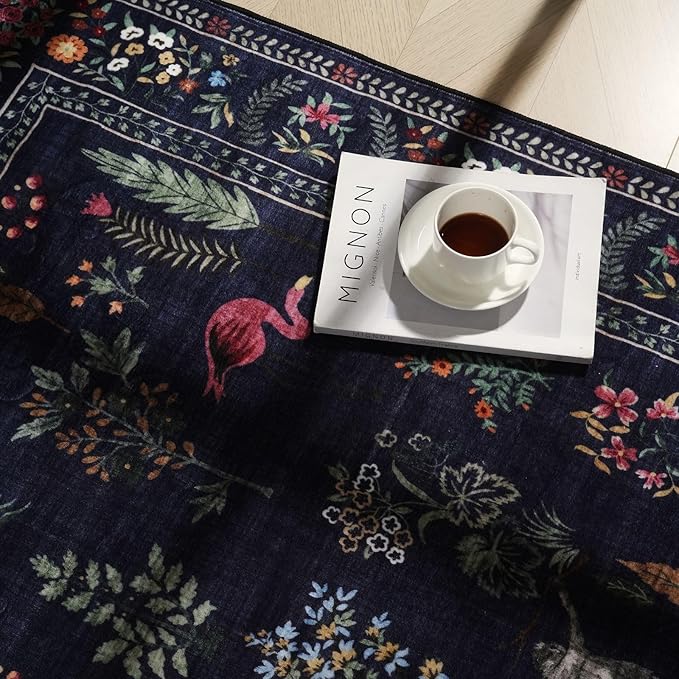 - Intriguing Animal and Floral Design—This floral animal rug woven by machine, The Vibrant-inspired design is digitally printed which details can’t be replicated by hand. Vibrant floral carpet patterns Intriguing adorn the spaces in your home, including the living room, bedroom, dining room, entryway, children's playroom, home office, kitchen, and more.