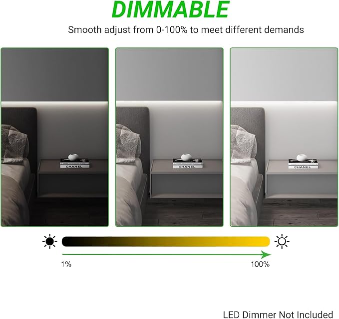 - [ Dimmable & Cuttable ]: Compatible with most PWM, TRIAC, RF, DALI, and smart dimmers (sold separately). Adjust brightness from 0-100% via app, remote, or manual control(depand on the dimmer). Cut every 1.1" (2.8cm) to fit any space