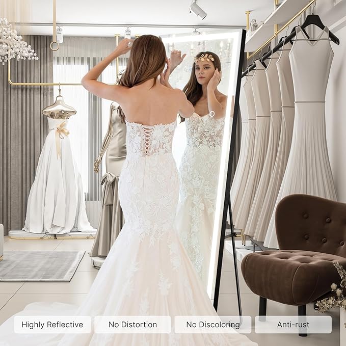 - 【Anti-Distortion & HD Reflection】 Unlike cheap mirrors, this full body mirror with lights uses premium silver-coated glass for a crystal-clear, true-to-life reflection—no warping or blurriness. Great for outfit checks, fitness progress, or detailed makeup application.