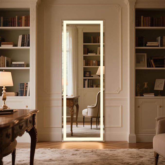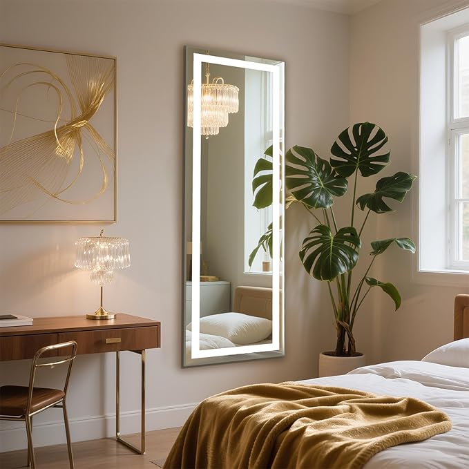 - UPGRADED MODERN MIRROR - The 64.96x21.65" large full size mirror features built-in lighting, making your reflection brighter and clearer, boosting your confidence. It's not just a body mirror, but also a piece of art that can brighten your mood every day. With 480 LED chips and professional makeup lighting, it offers bright and soft illumination. With a lifespan of 50,000 hours, if you use LED light for 3 hours a day, it can last up to 40 years, gives long-lasting reliability.