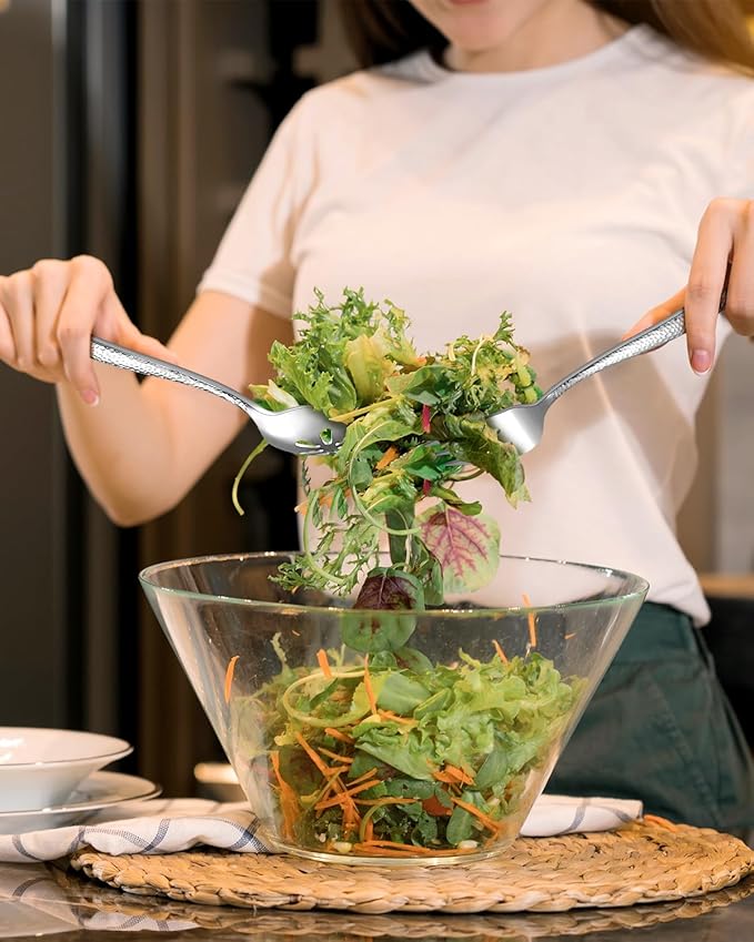 - METICULOUSLY CRAFTED: Each serving set handle with specially unique hammered pattern detail, and elegant curves and features a mirror-polished finish that makes it eye-catching and makes a lasting impression, providing the perfect refined complement to your dining occasions and culinary creations