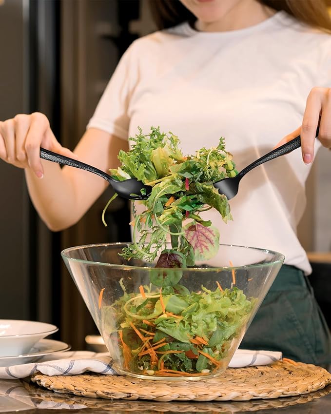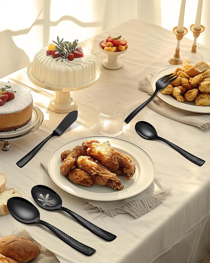 - METICULOUSLY CRAFTED: Each black serving set handle with specially unique hammered pattern detail, and elegant curves and features a mirror-polished finish that makes it eye-catching and makes a lasting impression, providing the perfect refined complement to your dining occasions and culinary creations