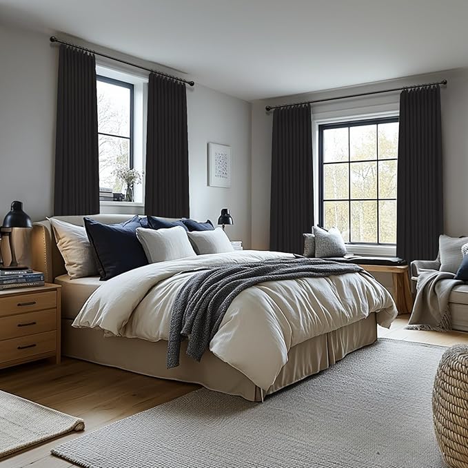 - Pinch Pleated Drapes:The elegant pinch pleat design effortlessly enhances the beauty of any room. Made with premium polyester and a linen-looking finish, it reduces wrinkles while giving you the natural appearance of linen, all with easy care.