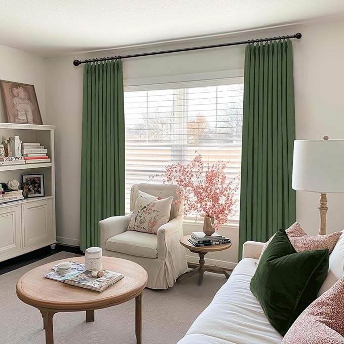 - Pinch Pleated Drapes:The elegant pinch pleat design effortlessly enhances the beauty of any room. Made with premium polyester and a linen-looking finish, it reduces wrinkles while giving you the natural appearance of linen, all with easy care.