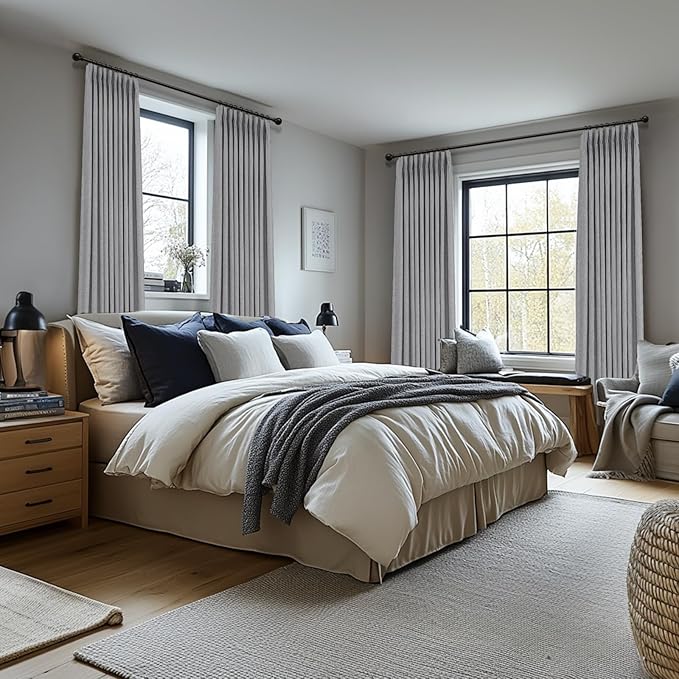 - Pinch Pleated Drapes:The elegant pinch pleat design effortlessly enhances the beauty of any room. Made with premium polyester and a linen-looking finish, it reduces wrinkles while giving you the natural appearance of linen, all with easy care.