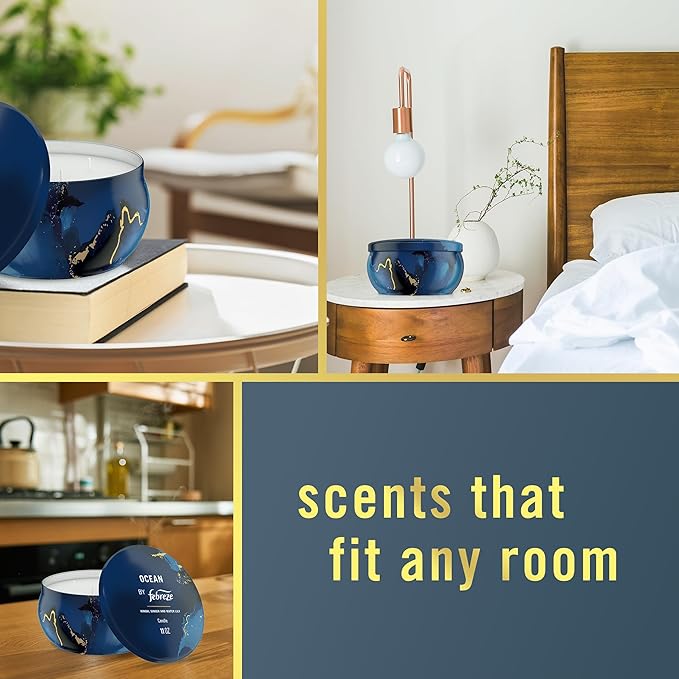 Febreze Scented Candle, Ocean Scent, 11 oz 4 Wick Candle, Single Pack