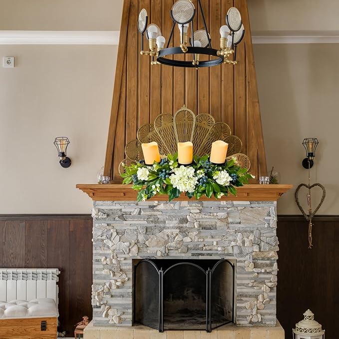 All Season Candle Holder Centerpiece for Table with Artificial Blueberry,White Hydrangea and Eucalyptus Leaf for Table Centerpiece Decor,Dining Room,Party Home Decor