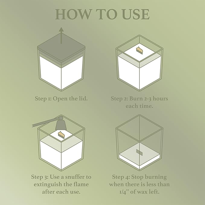 - Clean and Even Burn: With wider piece of wooden wick, the candle burns consistently and evenly that reduces the chance of tunnelling. (2 to 3 hours is the most ideal burn time for each use; never burn for more than 4 hours at a time or leave burning candle unattended)