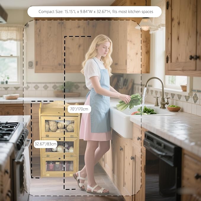 - Versatile Use: While perfect for storing potatoes, onions, and garlic, this bin can also be used for other root vegetables and even fruits, making it a versatile addition to your kitchen