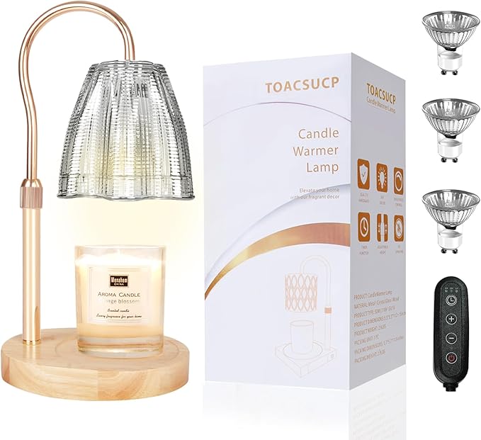 - [Enhanced Safety & Environmental Friendliness]: The TOACSUCP Candle Warmer Lamp utilizes a top-down thermal melting technique to melt candles. Compared to traditional burning candles, the candle warmer ensures a flameless and smoke-free experience, preventing fire accidents. The scented candle melts more evenly and provides a longer-lasting fragrance, creating a comfortable and safe living environment.