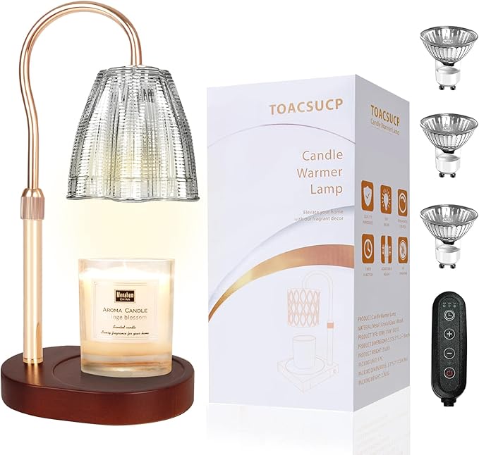 - [Enhanced Safety & Environmental Friendliness]: The TOACSUCP Candle Warmer Lamp utilizes a top-down thermal melting technique to melt candles. Compared to traditional burning candles, the candle warmer ensures a flameless and smoke-free experience, preventing fire accidents. The scented candle melts more evenly and provides a longer-lasting fragrance, creating a comfortable and safe living environment.