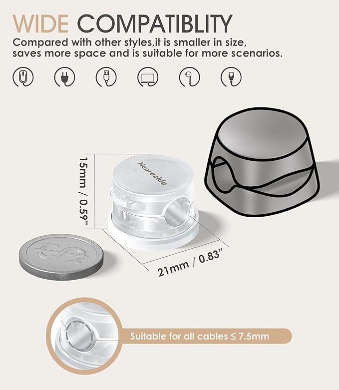 - 【7.5 mm Perfect Cable Slot Diameter】The 0.3inch (7.5mm) diameter can hold most cables, such as mobile phone charging cables, USB cables, HDMI thick cables, computer power cables, etc. Moreover, it can ensure that the charging cable as small as the iPhone original charging cable is fixed and does not fall off, pulled out smoothly