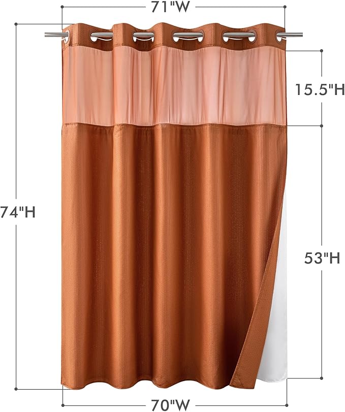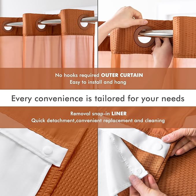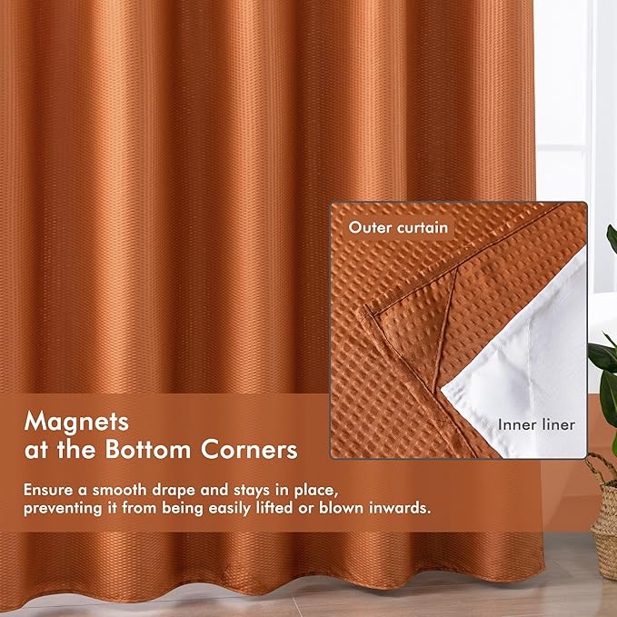 Mrs Awesome No Hook Shower Curtain with Snap-in Liner, Embossed Waffle Design Fabric Shower Curtain for Bathroom, Soft & Lightweight, 71x74, Taerracotta