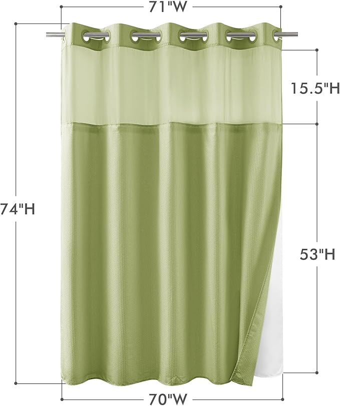 Mrs Awesome No Hook Shower Curtain with Snap-in Liner, Embossed Waffle Design Fabric Shower Curtain for Bathroom, Soft & Lightweight, 71x74, Sage Green