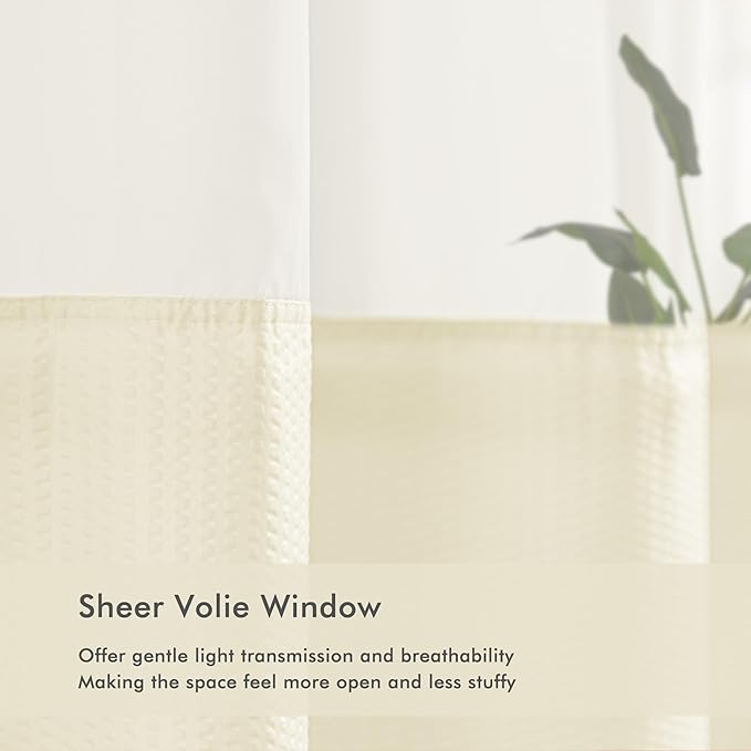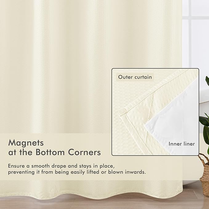 Mrs Awesome No Hook Shower Curtain with Snap-in Liner Less Time On/Off, Embossed Waffle-Look Textured Fabric Shower Curtain for Bathroom, Soft & Lightweight, 71x74, Cream