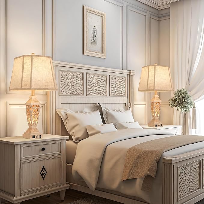 - Industrial Vintage Aesthetics: This table lamp combines timeless vintage elegance with modern functionality. The beautifully carved base and neutral linen lampshade make it an eye-catching piece in any room, whether placed in a bedroom, living room, or office. The rustic design enhances the aesthetic appeal of your space, creating a warm and welcoming atmosphere with soft, ambient light. The unique craftsmanship and quality materials ensure that this lamp will be a standout piece in your home decor for years to come.