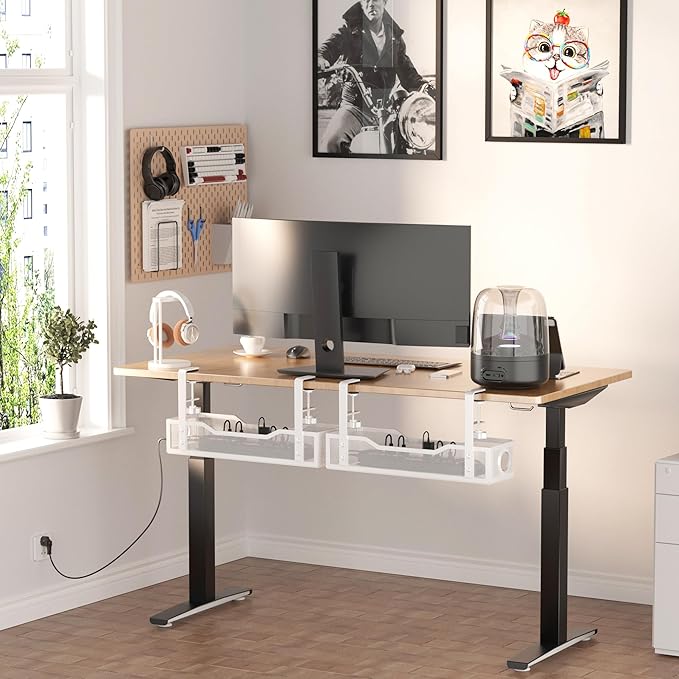 - Accommodate table thicknesses up to 3 inches- Unlike other cable management trays, our upgraded wire management system accommodates desk thicknesses from 0.4 to 3 inches, ensuring compatibility with various desktops. Additionally, the cable management box includes a scratch-resistant pad that protects your desktop from clip damage, making wire organization effortless.