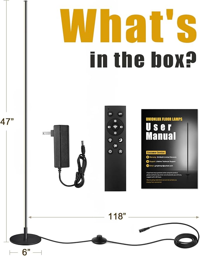 - 【Convenient & Minimalist Design】UNIONLUX corner floor lamp for livingroom is the perfect home decor solution, enhancing any space with style and comfort. You can control two lights at the same time through one remote control: cut off the power of the light and restart it after three seconds, press and hold the WiFi icon button in the center of the remote control to start pairing, after the flashing is completed, you can control two lights through one remote control.