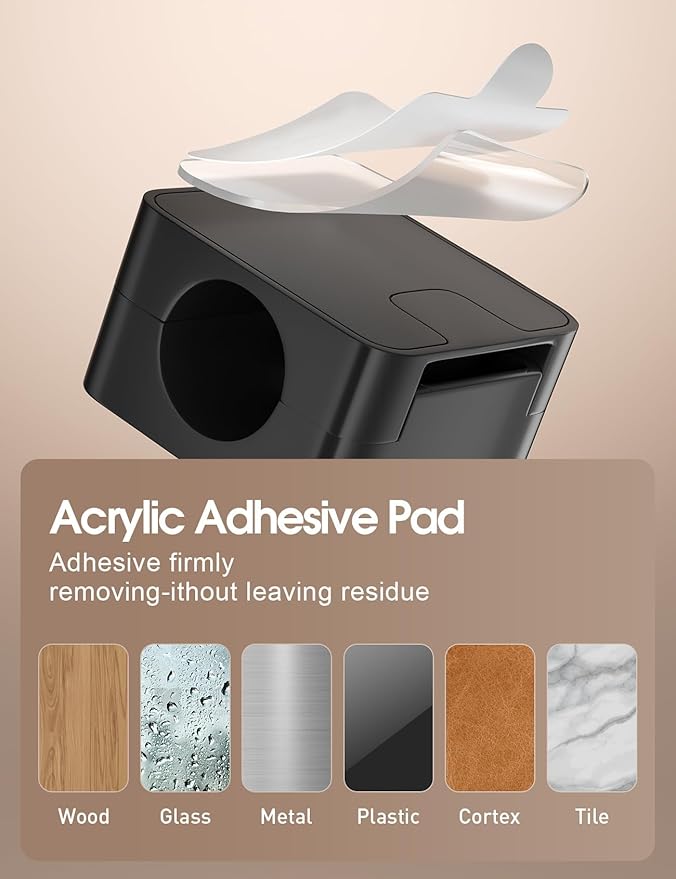 - 【Enhanced No-Residue Acrylic Adhesive】➤The Upgraded Acrylic Adhesive sticky pad allows the cable organizer to stick firmly to almost any flat& clean surface, such as wooden tables, glass, ceramic tiles, etc. Meanwhile, the transparent removable acrylic adhesive pad will not damage your desktop, wall, no residue left after removal. A replacement stick pad is also included in the box, making it possible to reuse the cord holder