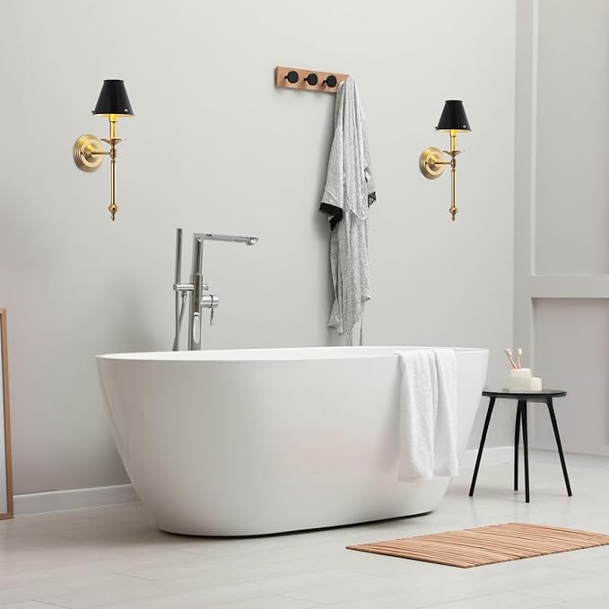 Modern Wall Sconce Industrial Mid Century Bathroom Vanity Wall Light Brushed Brass Finished Frame and Black Metal Lampshade Wall Mount Lights for Living Room Bedroom Stairs Corridor Mirror