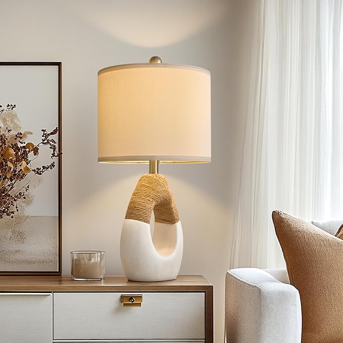 - Upgraded Boho Table Lamp,Meet more space needs: Modern finishes combined with minimalist design offer a new Nordic category that embraces simplicity as the ultimate in sophistication. This boho lamps for bedrooms stand is a flat egg shape with a hollow middle, the upper part of cotton and linen is entangled, and the lower part is smooth resin,OYEARS table lamps for living room set of 2 with unique design style is loved by the fashion lovers.*It is 22 inches in size and suitable for a variety of spaces - living room, bedroom, study, etc.